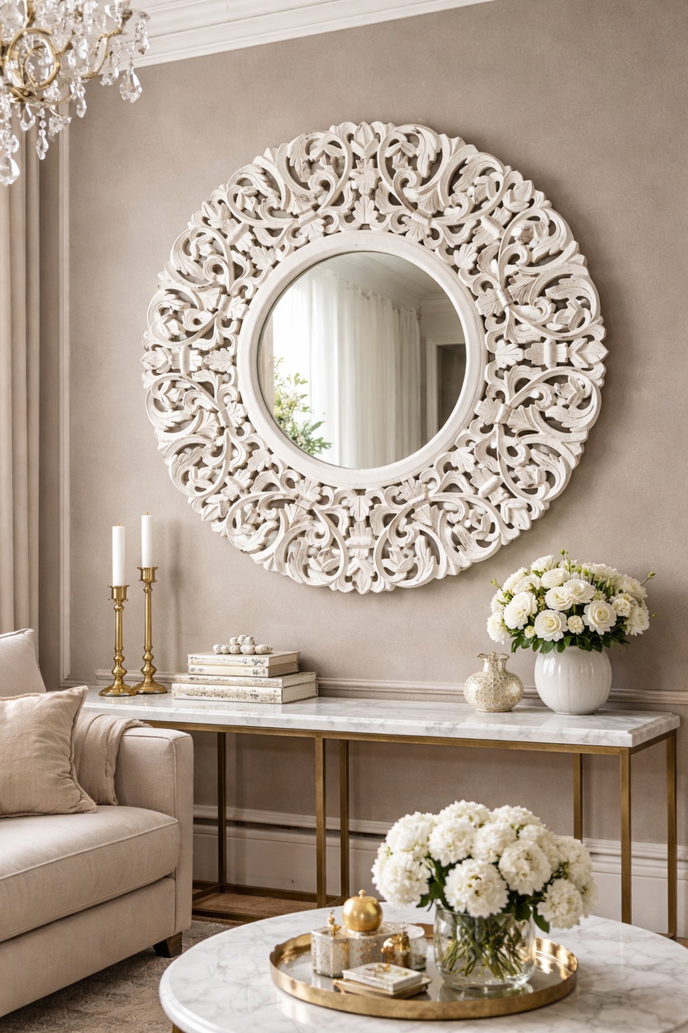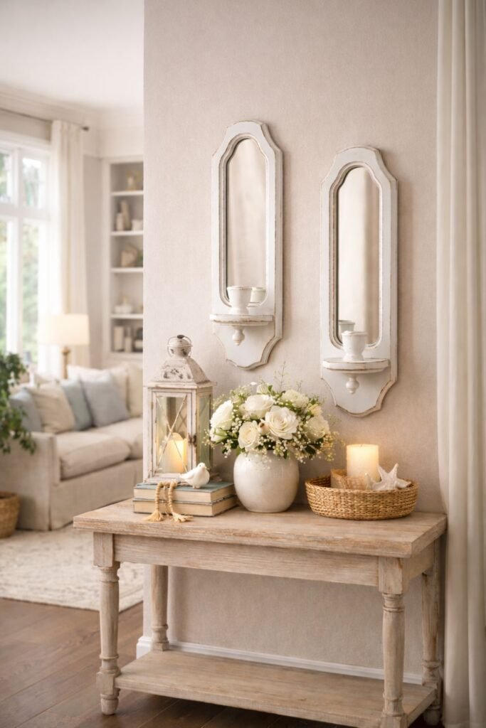 A quiet interplay of reflection and candlelight, designed to soften the space and elevate its presence.