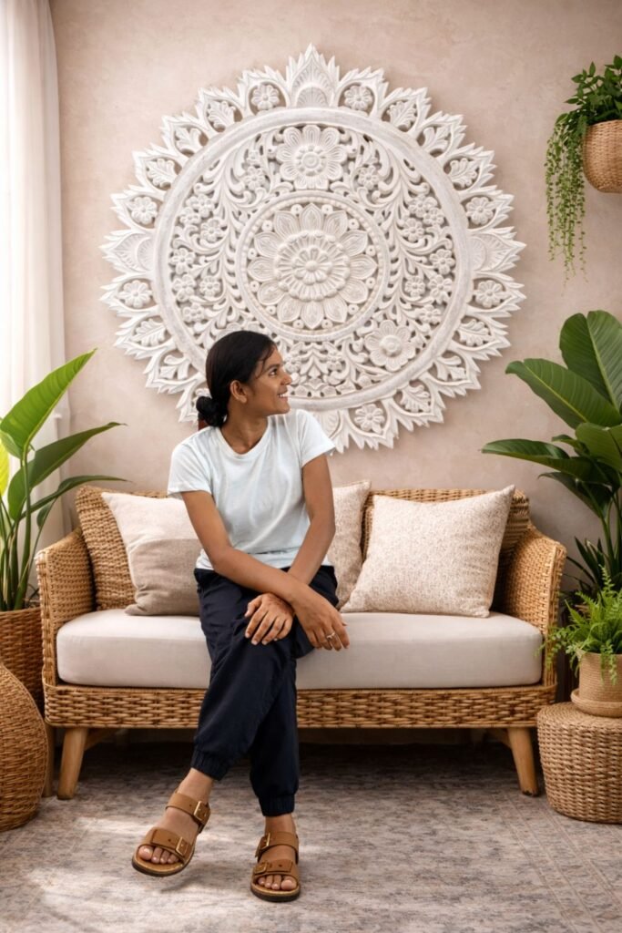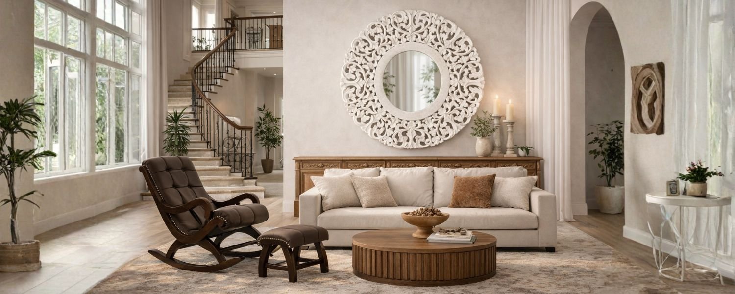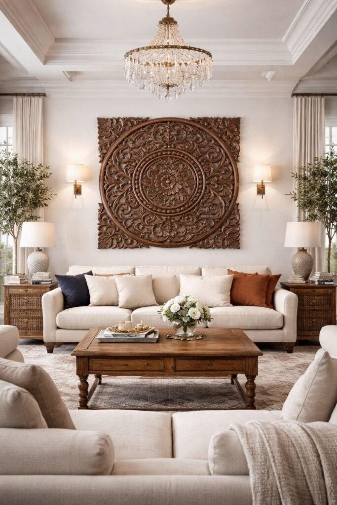 Intricately carved and softly finished, this statement wall panel brings depth, texture, and quiet elegance to your space. Inspired by classic craftsmanship, it transforms a wall into a moment of understated luxury.